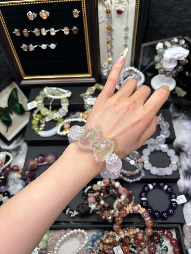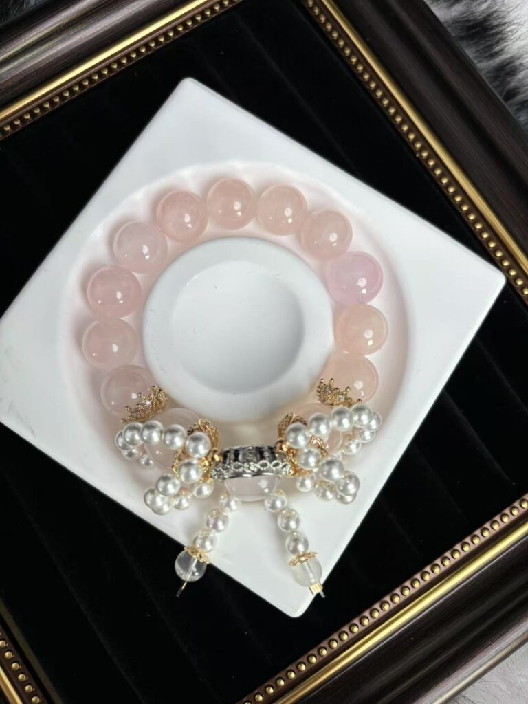 (Selena)Pink Crystal, Pearl Bow Design, Natural Crystal, Multiple Categories