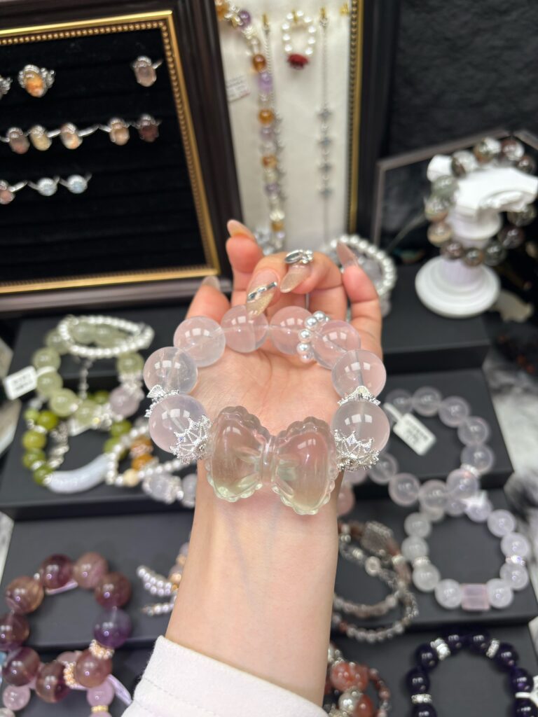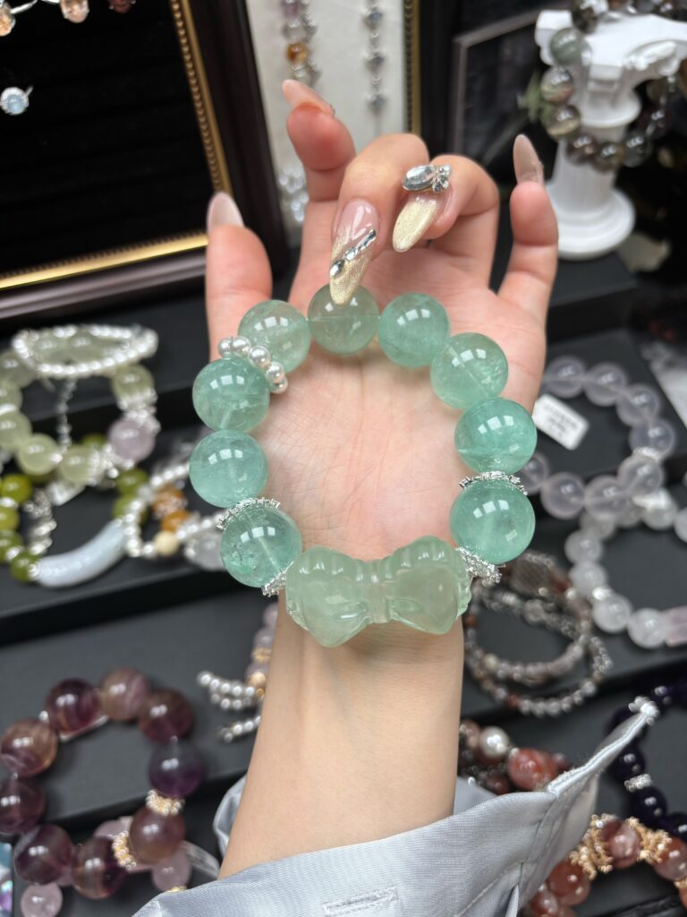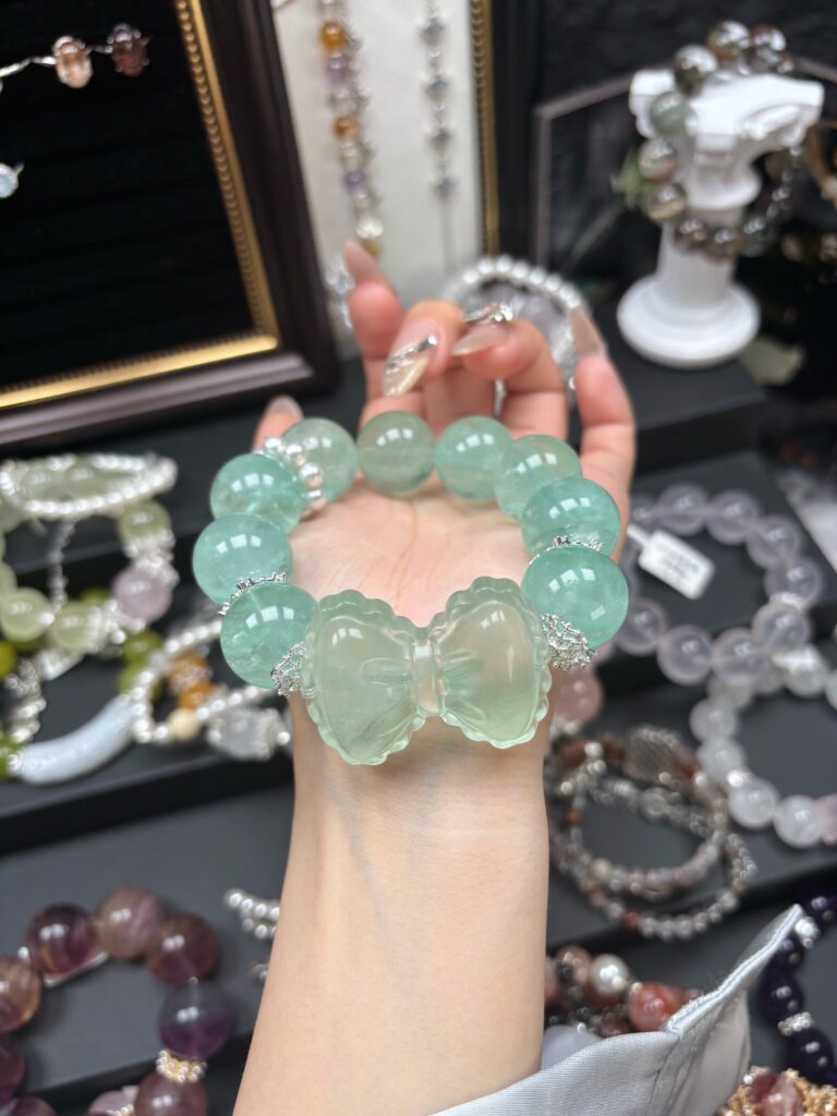 (Selena)Mint Green Strawberry Quartz, Bow Design, Natural Crystal, Multiple Categories